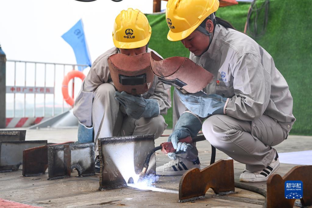 9月20日,工作人員對合龍后的橋面連接縫進(jìn)行焊接。