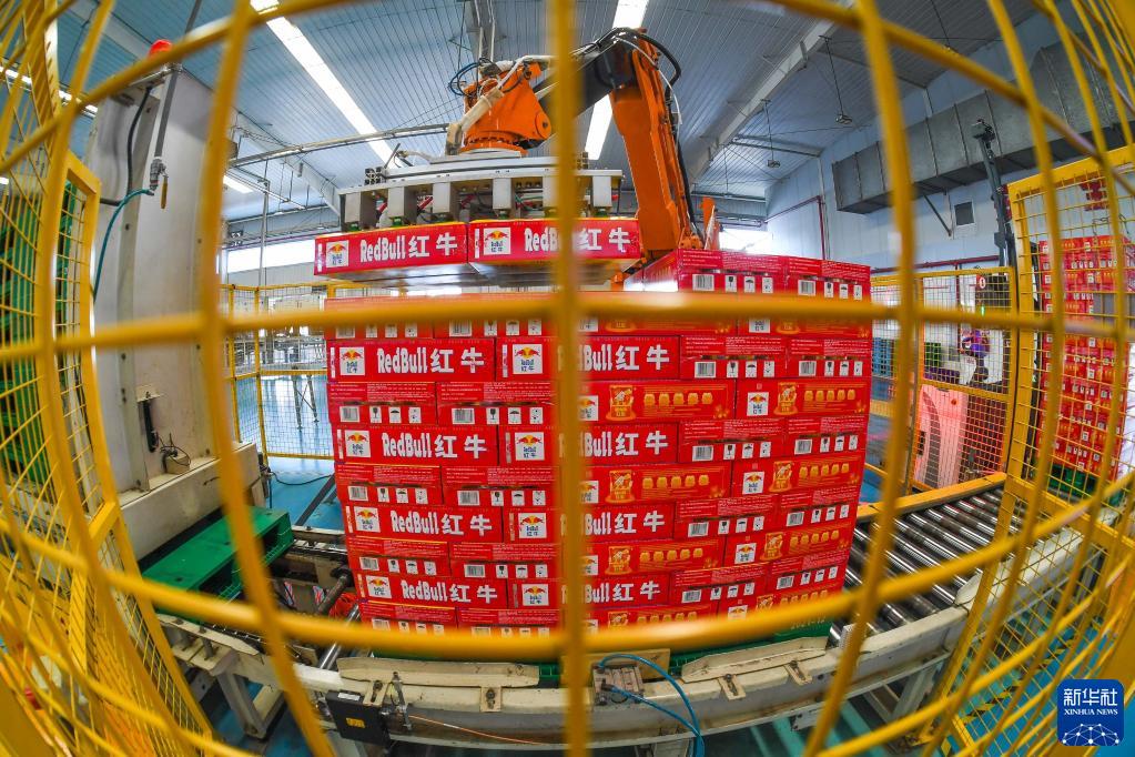 三水“水都基地”紅牛維他命飲料公司的包裝運輸機器人在高速運轉(9月17日攝)。