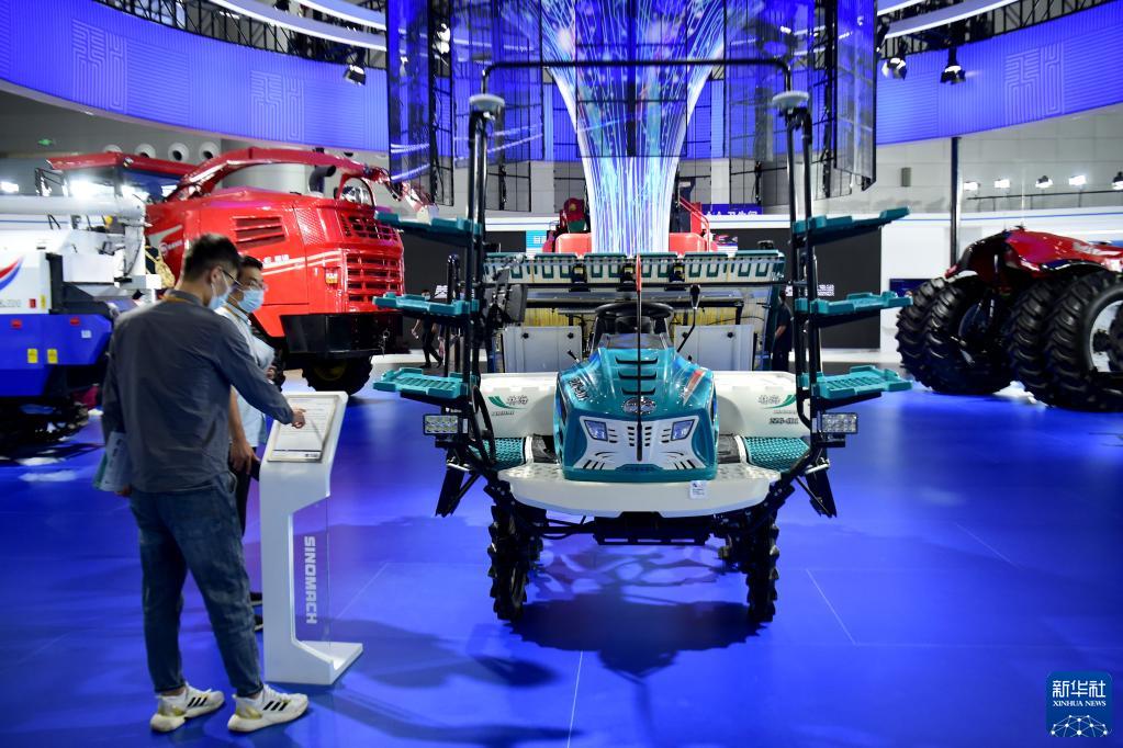 9月20日,觀(guān)眾在2022世界制造業(yè)大會(huì )上參觀(guān)一款高速插秧機。