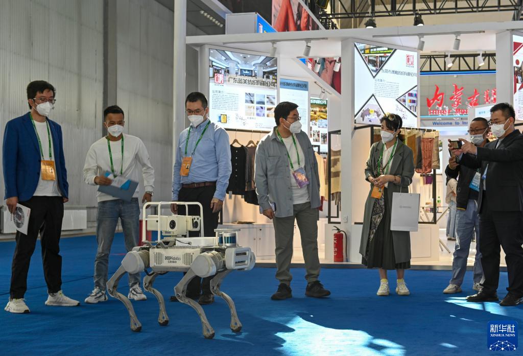 9月20日,在第七屆中國-亞歐博覽會(huì )上,工作人員為觀(guān)眾展示四足機器人。