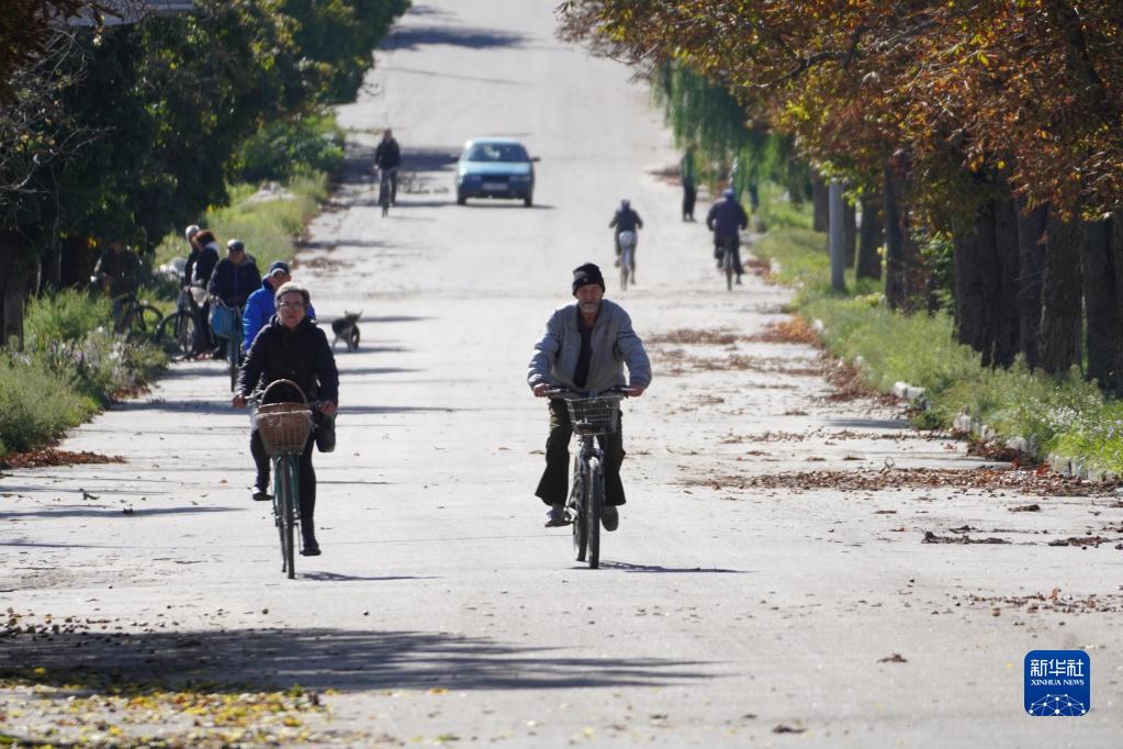 9月19日,在烏克蘭哈爾科夫州伊久姆市,人們騎車(chē)去領(lǐng)取人道主義物資。
