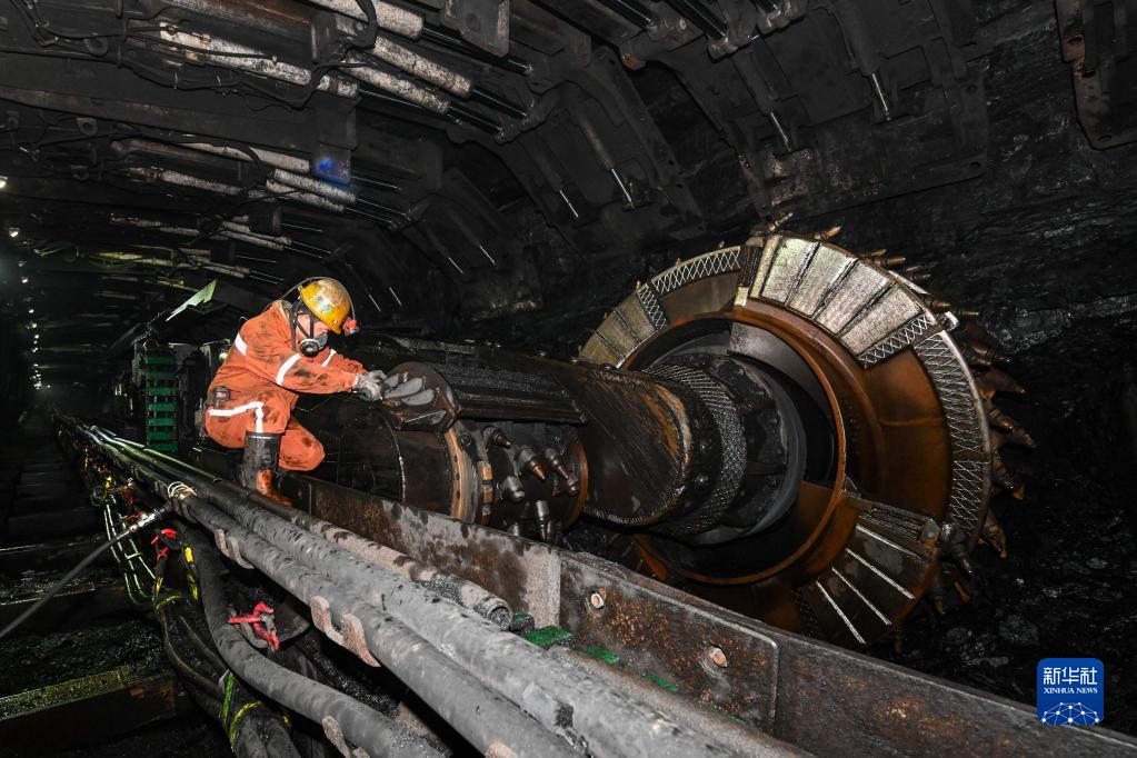 9月20日,在龍王溝煤礦礦井下,工人在檢修采煤機。