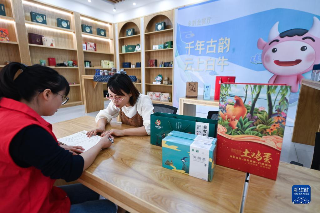 9月21日,在杭州市臨安區昌化鎮白牛村電商大樓的農創(chuàng )客中心,張青(右)與昌化鎮黨員志愿者討論直播培訓計劃。張青回鄉聯(lián)合當地青年志愿者組建“云上白?!ね乃C”特色電商平臺,組織“農創(chuàng )客”開(kāi)展直播培訓。