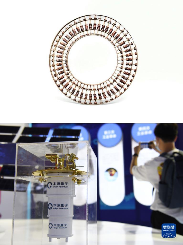 這是一張拼版照片:上圖為明代銅圓八卦算盤(pán)(安徽程大位珠算博物館供圖);下圖為在2022世界制造業(yè)大會(huì )上,合肥本源量子計算科技有限責任公司展出的24比特超導量子計算機模型(新華社記者周牧2022年9月20日攝)。