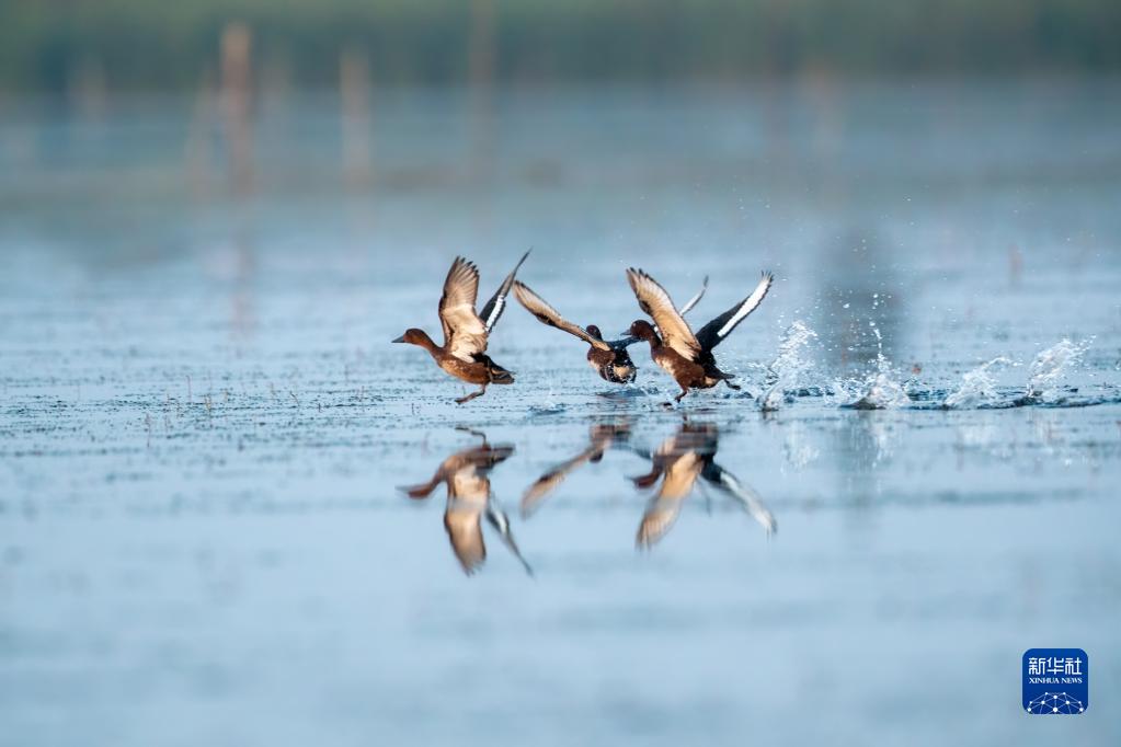 這是在雄安新區白洋淀一處鳥(niǎo)類(lèi)棲息地拍攝的野生潛鴨(2022年9月9日攝)。