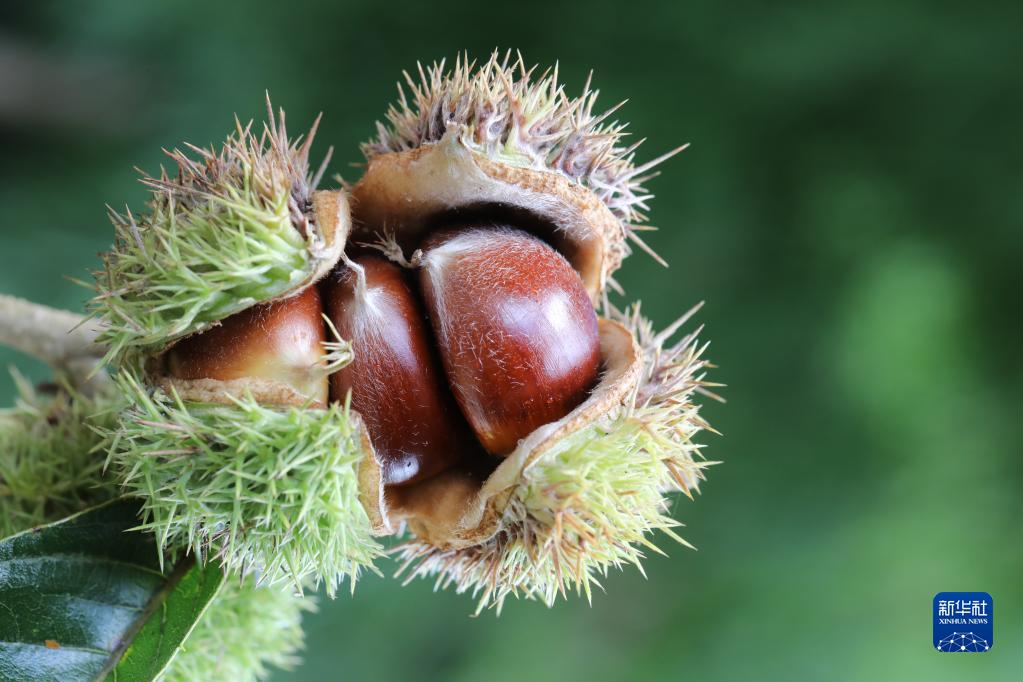 在云南騰沖市曲石鎮公平村拍攝的成熟的板栗(9月12日攝)。