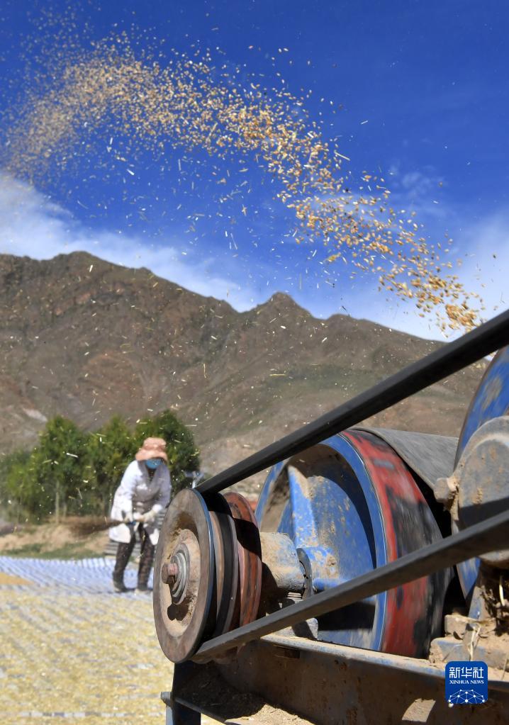 9月21日,拉薩市林周縣江熱夏鄉江夏村的村民在揚場(chǎng)。