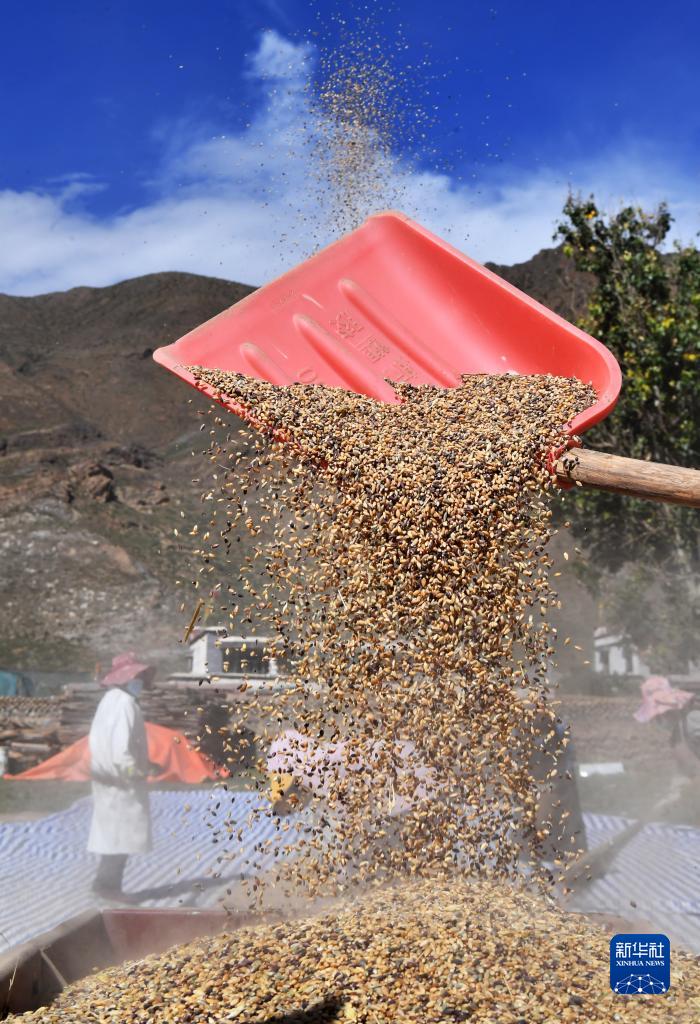 9月21日,拉薩市林周縣江熱夏鄉江夏村的村民在揚場(chǎng)。