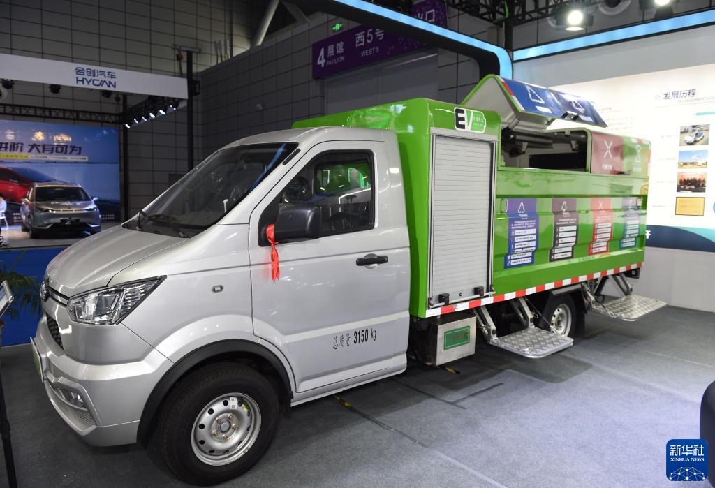 這是2022世界制造業(yè)大會(huì )新能源汽車(chē)展廳里展出的一款新能源垃圾運輸車(chē)(9月21日攝)。