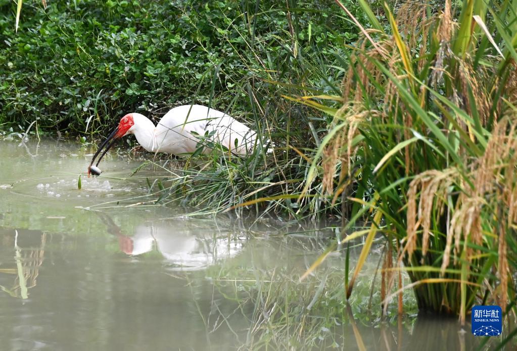 陜西省漢中市洋縣位于秦嶺南麓、漢中盆地東緣,是世界聞名的“朱鹮之鄉”。目前當地生活的朱鹮有7000多只,秋收時(shí)節,朱鹮在田間飛舞嬉戲,構成一幅自然和諧的田園美景。