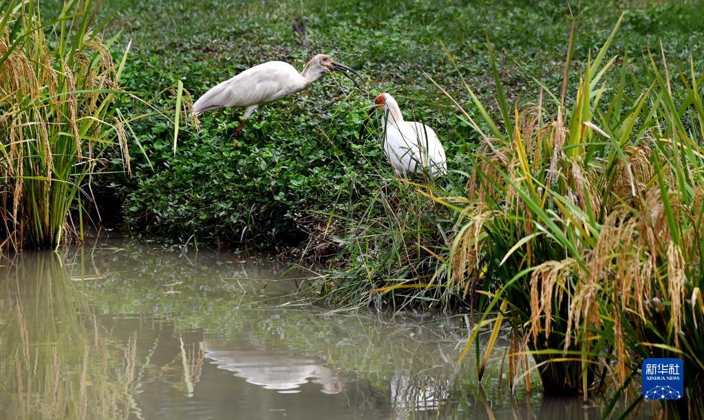 陜西省漢中市洋縣位于秦嶺南麓、漢中盆地東緣,是世界聞名的“朱鹮之鄉”。目前當地生活的朱鹮有7000多只,秋收時(shí)節,朱鹮在田間飛舞嬉戲,構成一幅自然和諧的田園美景。