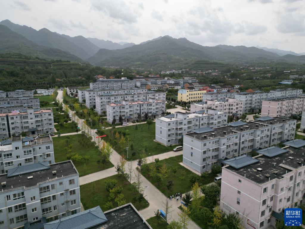 這是9月22日拍攝的陜西省周至縣馬召鎮安富園移民搬遷社區,社區居民大多從黑河水源地搬遷至此(無(wú)人機照片)。