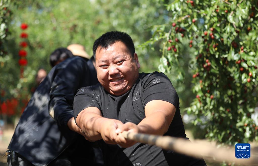 9月22日,河北省滄州市滄縣村民進(jìn)行棗林拔河比賽。