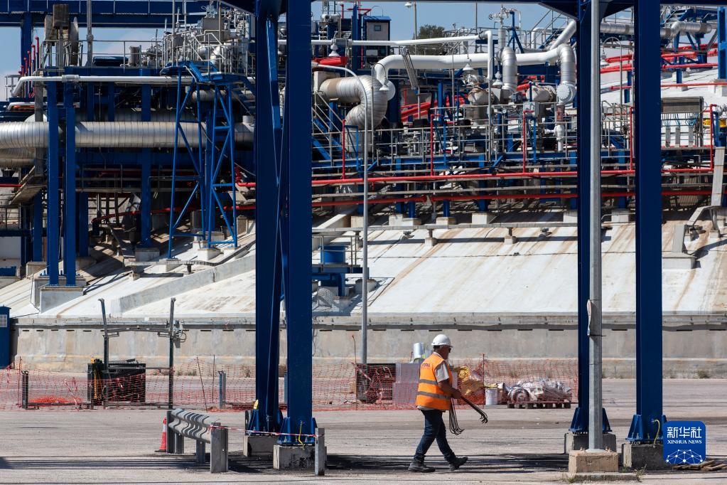 9月21日,一名工作人員在希臘雷維蘇薩液化天然氣接收站工作。