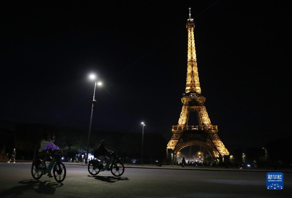 這是9月22日拍攝的亮燈的法國巴黎地標性建筑——埃菲爾鐵塔。