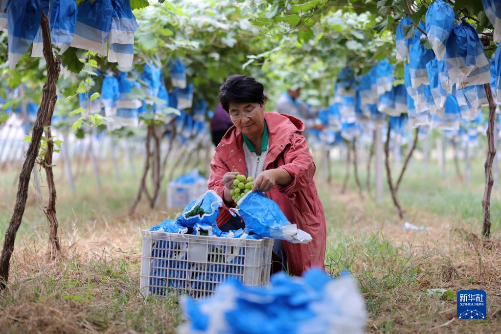 9月20日,在河北省邢臺市廣宗縣南寺郭村的果仙園葡萄基地,“60后”付鳳玲在整理剛采摘的“陽(yáng)光玫瑰”葡萄。付鳳玲從事葡萄種植16年,今年預計收獲各種葡萄30余萬(wàn)斤。