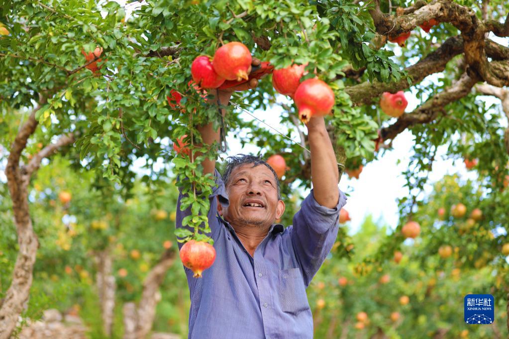 9月19日,山東省棗莊市嶧城區榴園鎮,“60后”果農趙夫忠在采摘石榴。趙夫忠從事石榴種植近20年,最近他種植的石榴再次迎來(lái)豐收。