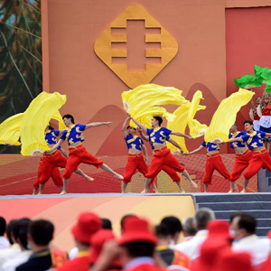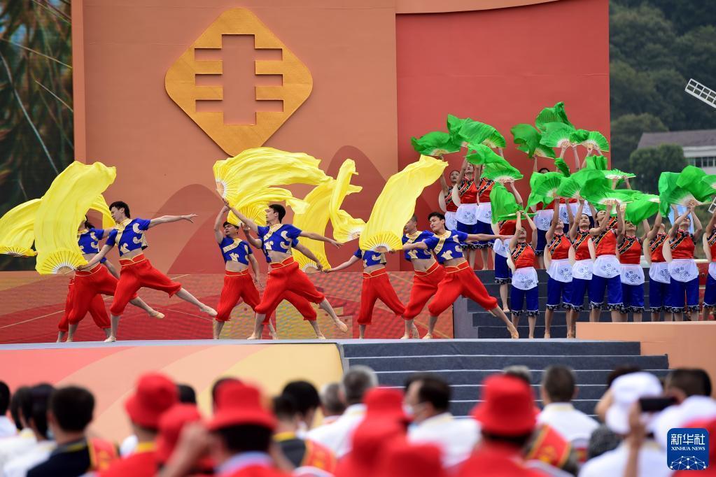 9月23日,在安徽省六安市舒城縣春秋鄉文沖村,演員在2022年中國農民豐收節安徽主場(chǎng)活動(dòng)上表演。