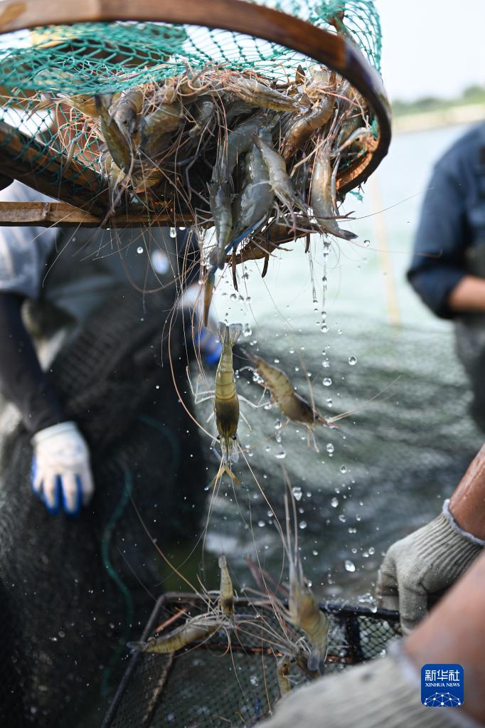 近日,浙江省湖州市吳興區八里店鎮豐盛灣水產(chǎn)養殖基地迎來(lái)沼蝦收獲季,工人們在蝦塘中圍網(wǎng)、捕獲、分揀、裝車(chē),展現出一幅具有江南水鄉特色的豐收圖景。