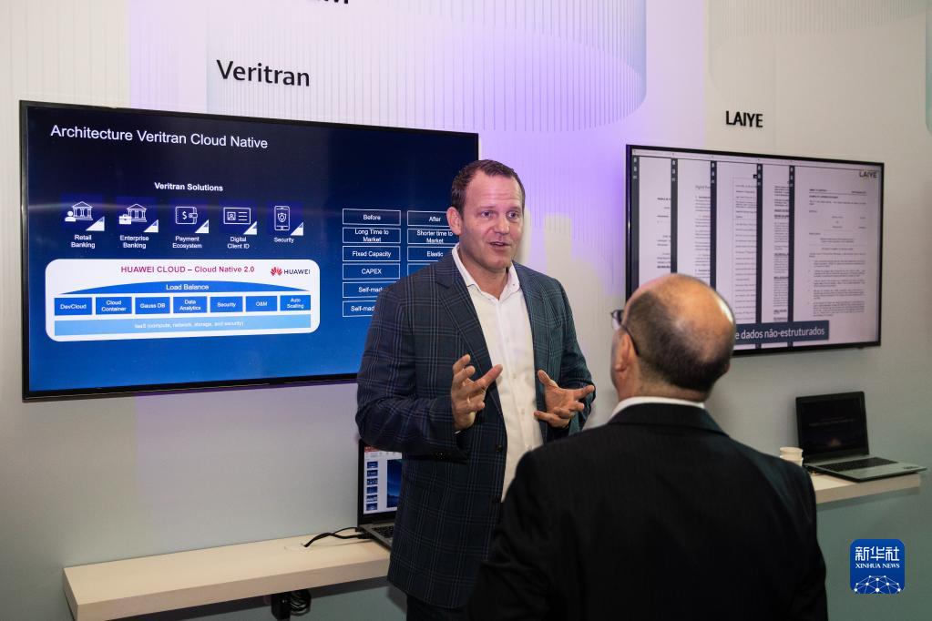 9月21日,在巴西里約熱內盧舉行的華為云拉美三周年峰會(huì )上,參會(huì )代表在Veritran公司展臺前交流。新華社記者 王天聰 攝