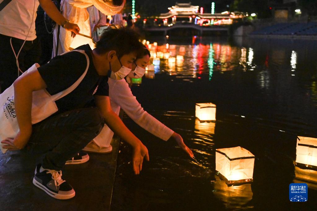 當日,浙江杭州宋城景區秋季主題活動(dòng)“天燈節”啟幕,《河燈祈?!贰度A燈巡游》《華服秀》等主題演出和活動(dòng)全新亮相,游客與演員同賞花燈,共放河燈,祈福納祥。
