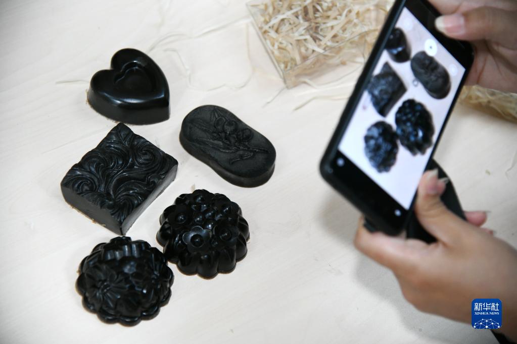 9月22日,在“無(wú)聲咖啡師”公益培訓課上,學(xué)員拍攝制作完成的咖啡渣香皂。