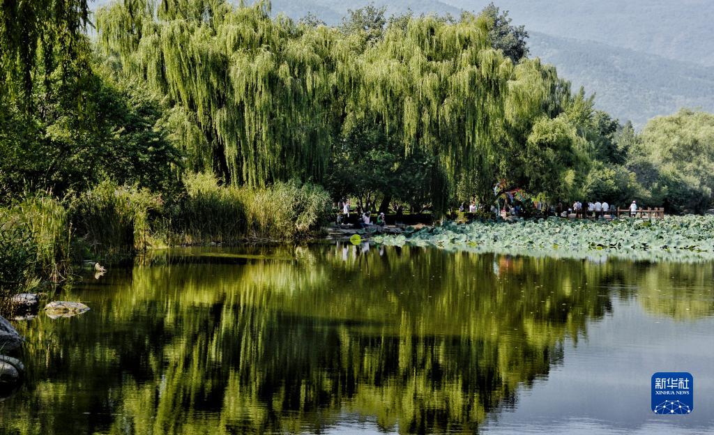 當日,北京市天氣晴好,人們來(lái)到國家植物園,游園賞秋,休閑度周末。