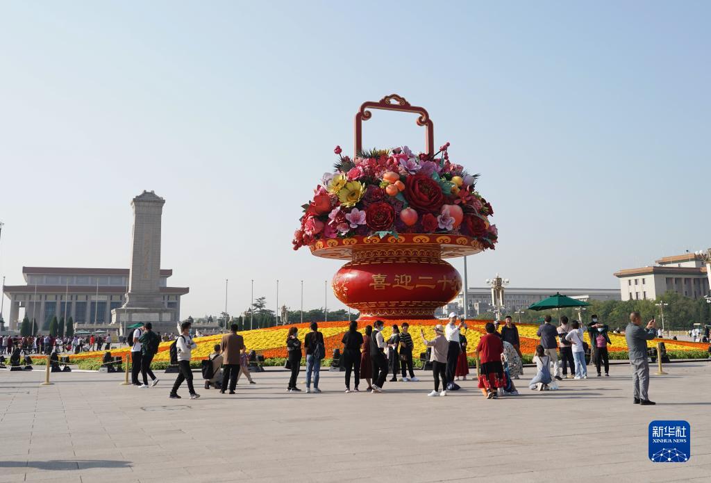 新華全媒+|“祝福祖國”巨型花果籃亮相天安門(mén)廣場(chǎng)