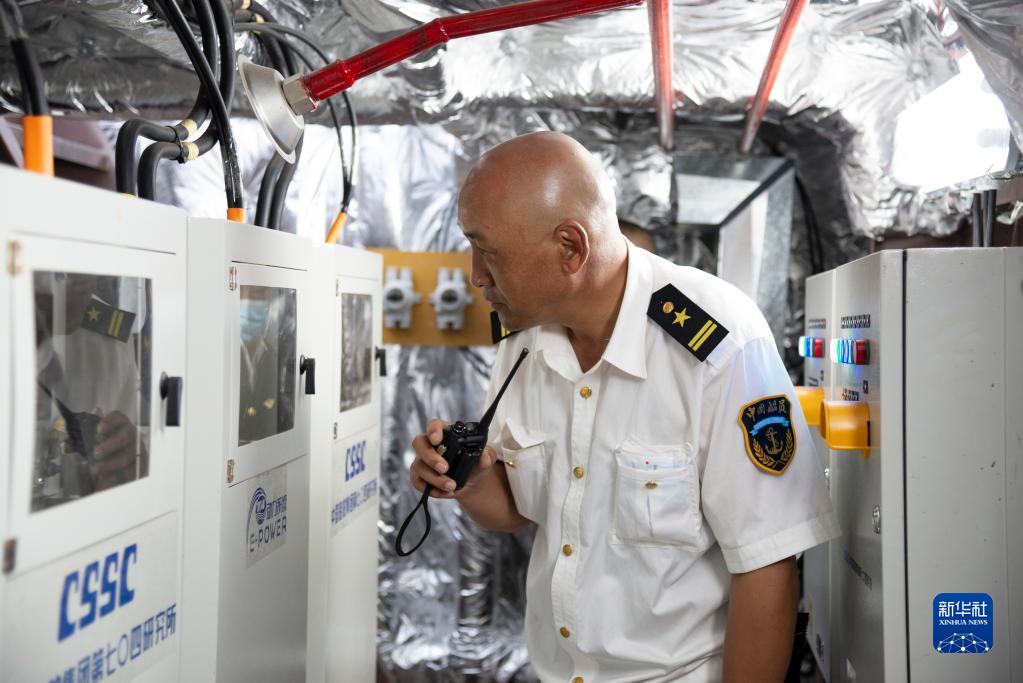 9月26日,工作人員在檢查新能源游船“風(fēng)花雪月號”動(dòng)力系統。