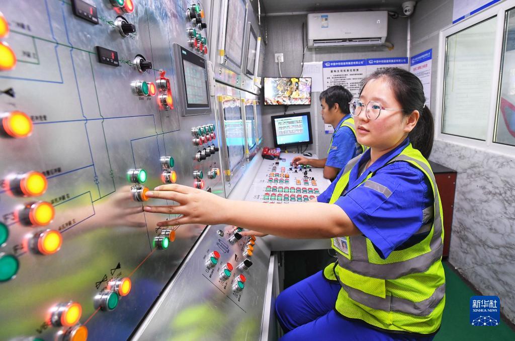 9月27日,“大灣區號”主司機楊涔(前)在操控室操控這臺直徑超過(guò)13米的巨型設備。