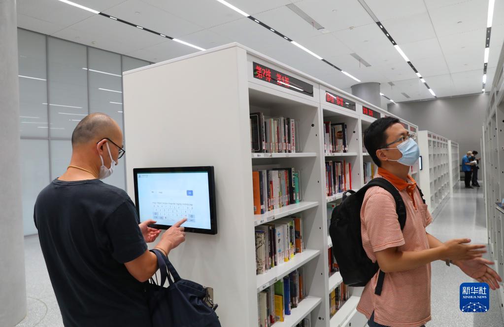 9月28日,讀者在智能書(shū)架區通過(guò)安放在書(shū)架上的電腦查詢(xún)書(shū)籍。