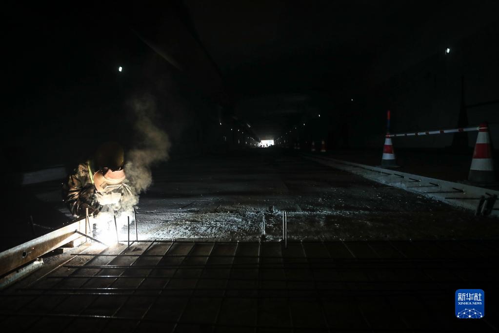 9月29日,工人在大連灣海底隧道內施工。 新華社記者 潘昱龍 攝