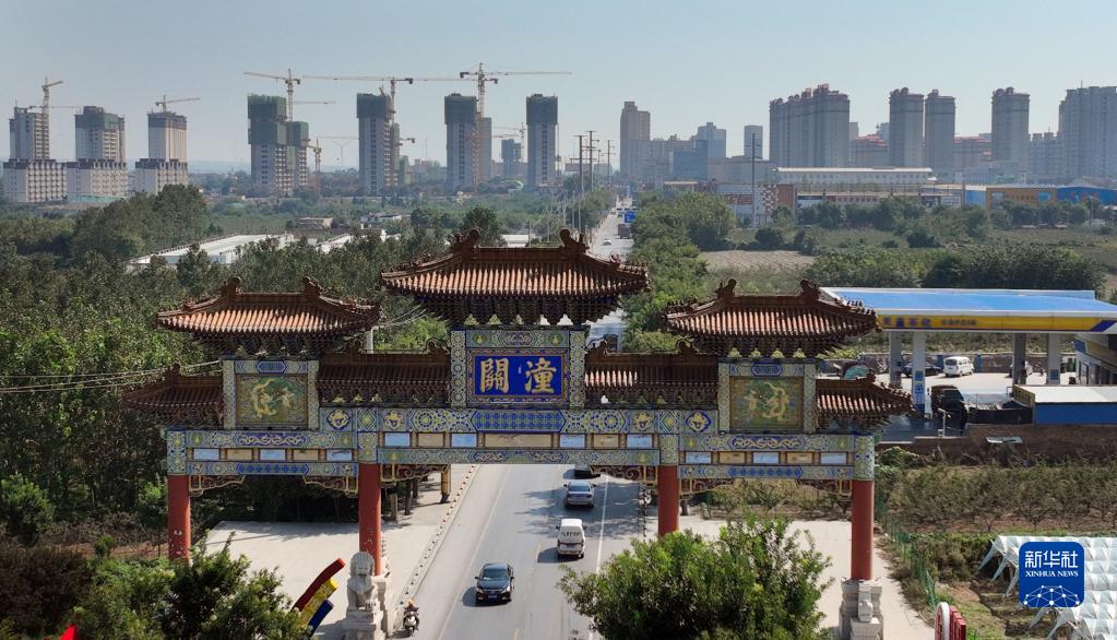 這是9月28日拍攝的陜西省渭南市潼關(guān)縣城牌樓(無(wú)人機照片)。