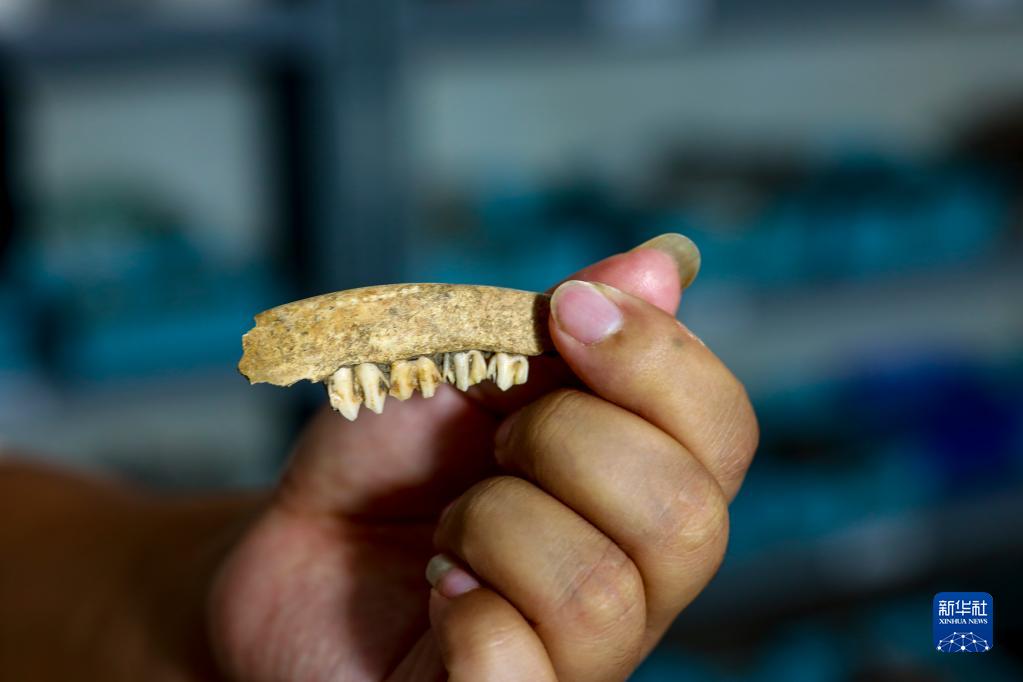 這是小田溪墓群此次考古發(fā)掘中出土的動(dòng)物骨骼(9月27日攝)。