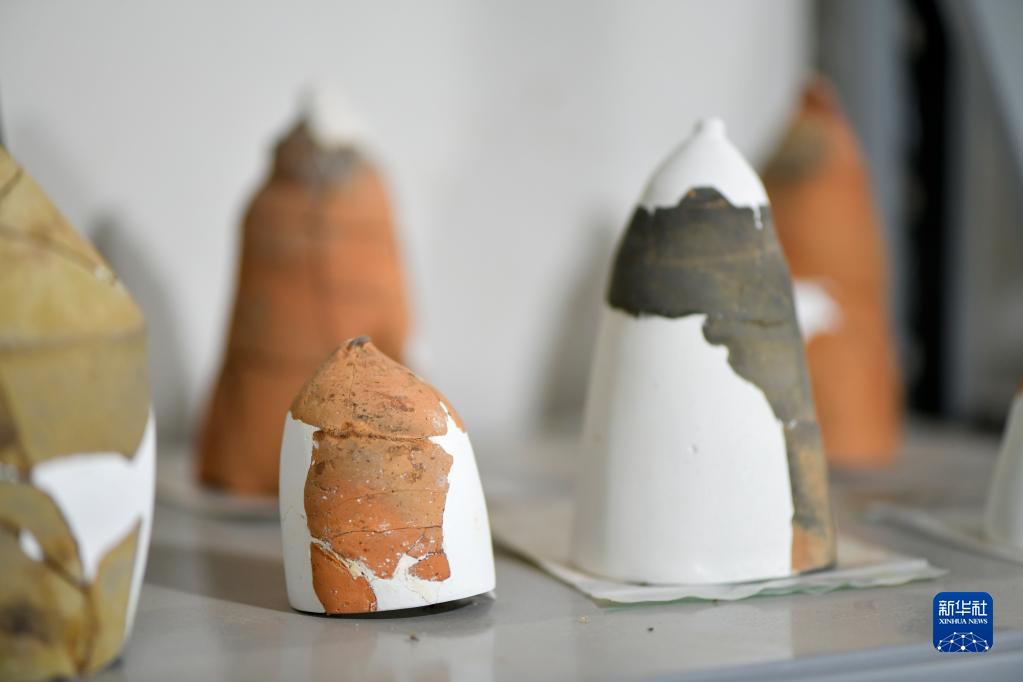 這是小田溪墓群此次考古發(fā)掘中出土的陶制尖底器(9月27日攝)。