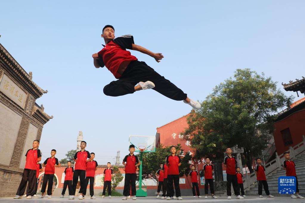 這是河南省焦作市溫縣一家武校的青少年學(xué)員在暑期練習武術(shù)(2022年8月5日攝)。
