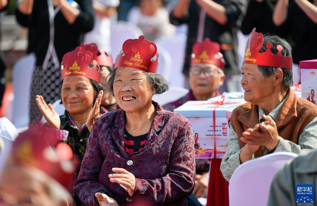 9月28日,在天津市薊州區羅莊子鎮楊家峪村,老人們在觀(guān)看文藝表演。