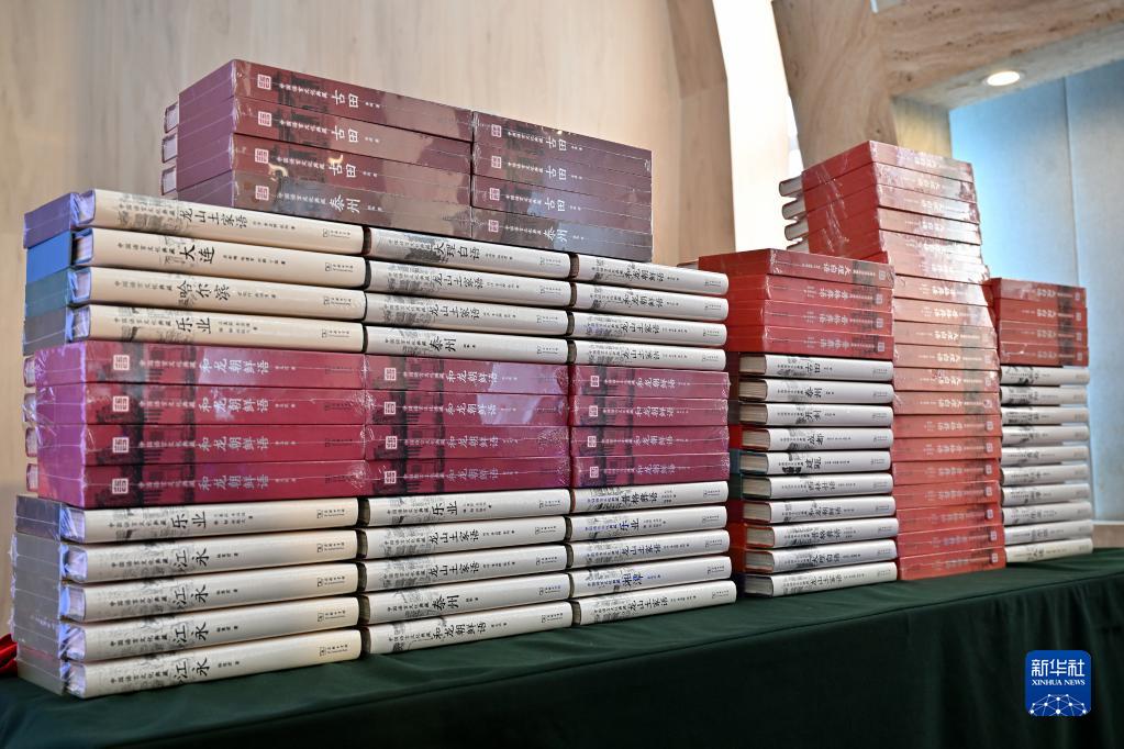 這是現場(chǎng)擺放的中國語(yǔ)言資源保護工程成果《中國語(yǔ)言文化典藏》第二輯20冊的相關(guān)書(shū)籍(9月29日攝)。