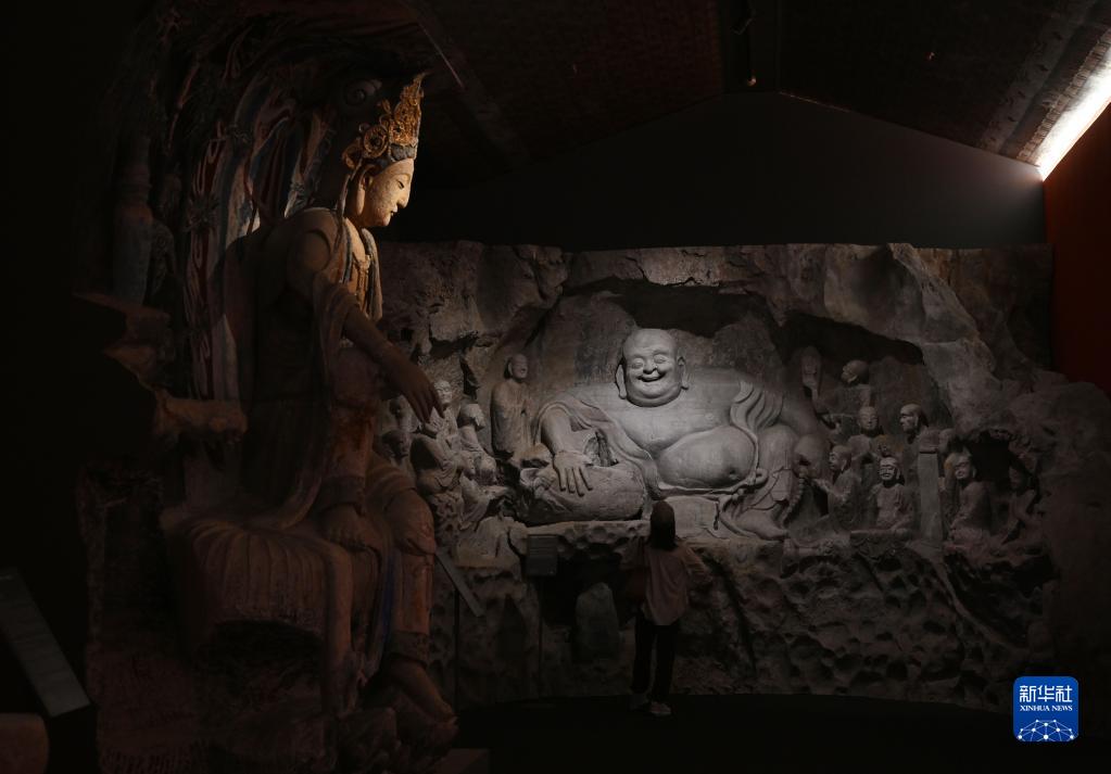 9月29日,觀(guān)眾參觀(guān)等比例高保真數字化3D打印復制的杭州西湖飛來(lái)峰冷泉溪南岸布袋彌勒及十八羅漢像。