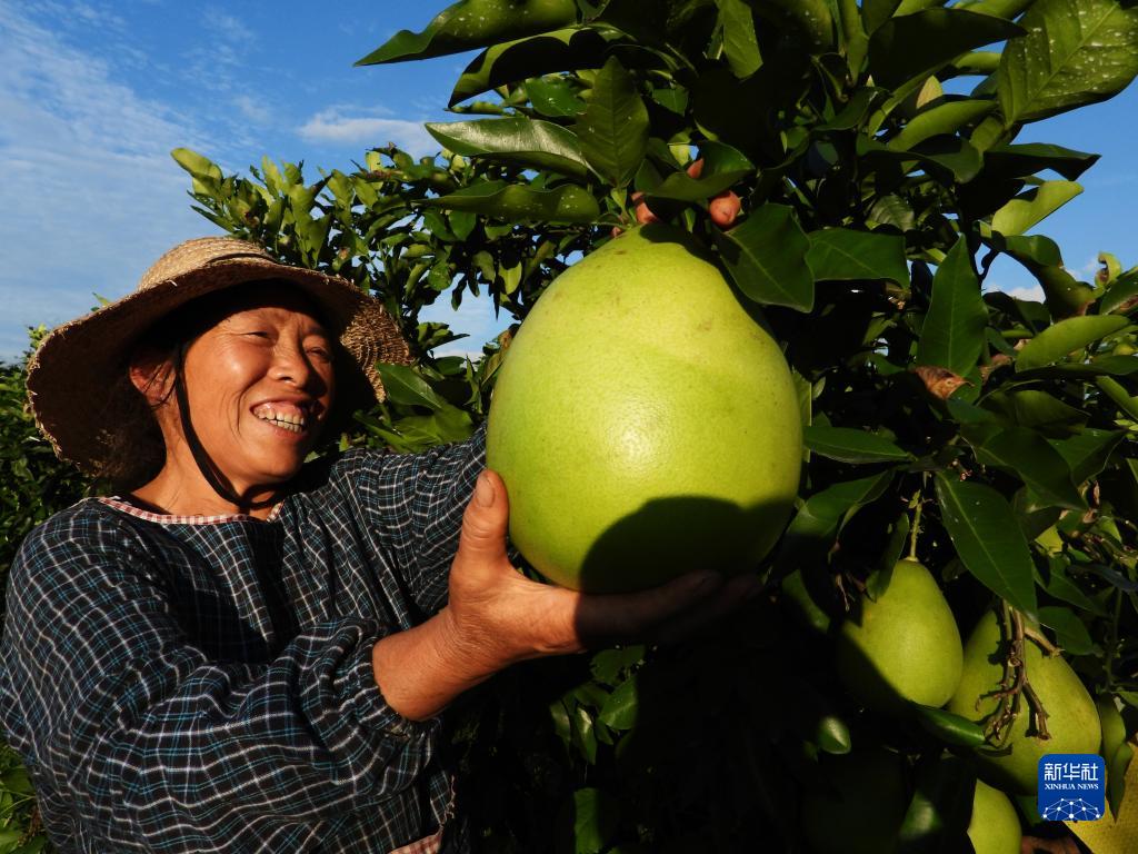 9月29日,在四川省達州市大竹縣楊家鎮的蜜柚產(chǎn)業(yè)園,果農采收蜜柚。