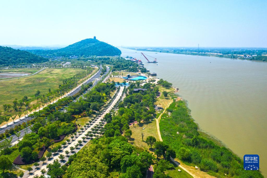 這是2022年5月17日拍攝的安徽省馬鞍山市長(cháng)江岸線(xiàn)景觀(guān)帶(無(wú)人機照片)。