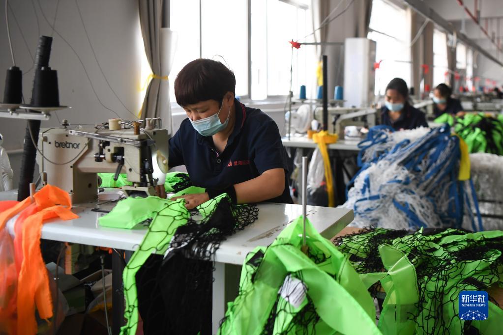 2022年9月27日,工人在湖南省沅江市湖南星海運動(dòng)用品有限公司加工運動(dòng)用網(wǎng)。近年來(lái),這家傳統漁網(wǎng)生產(chǎn)企業(yè)轉型生產(chǎn)運動(dòng)休閑用網(wǎng)。