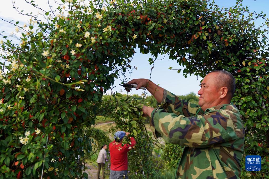 2022年9月28日,在四川瀘州納溪區大渡口鎮,工人在長(cháng)江支流清溪河岸邊綠地修剪植物。
