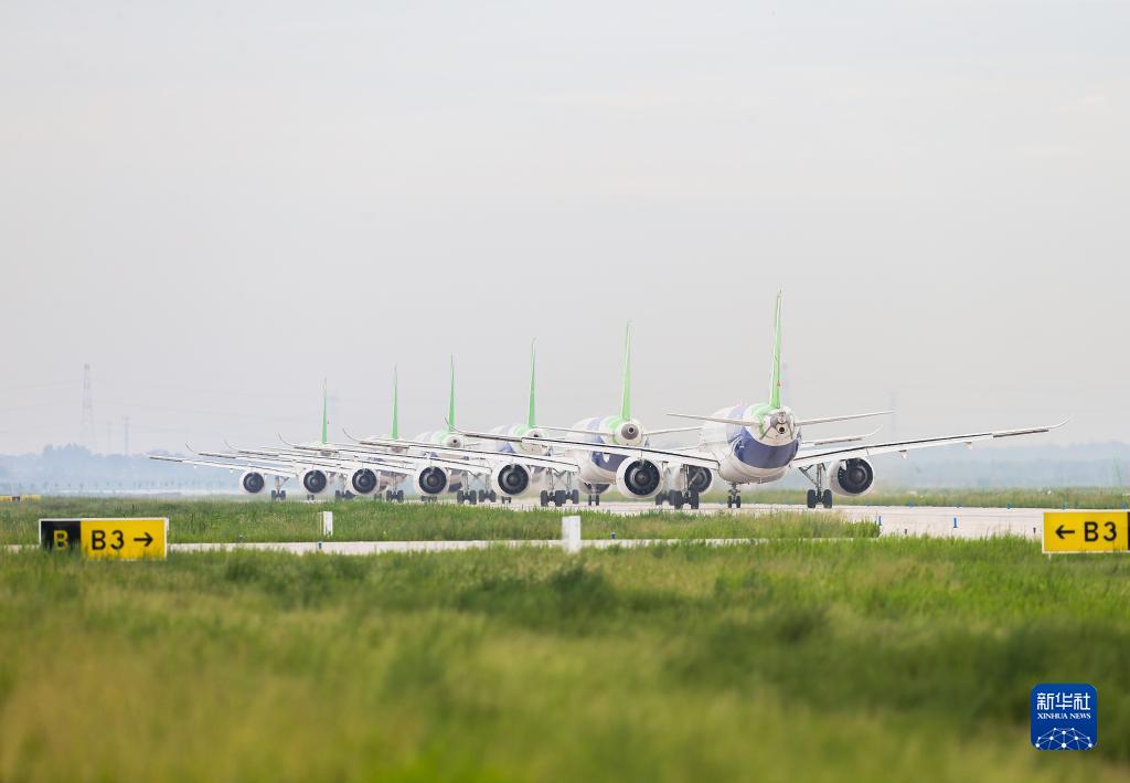 2022年7月18日在陜西省蒲城縣拍攝的C919大型客機的六架試飛機。