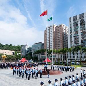 10月1日,澳門(mén)特別行政區政府在金蓮花廣場(chǎng)舉行升旗儀式,慶祝中華人民共和國成立73周年。新華社記者 張金加 攝