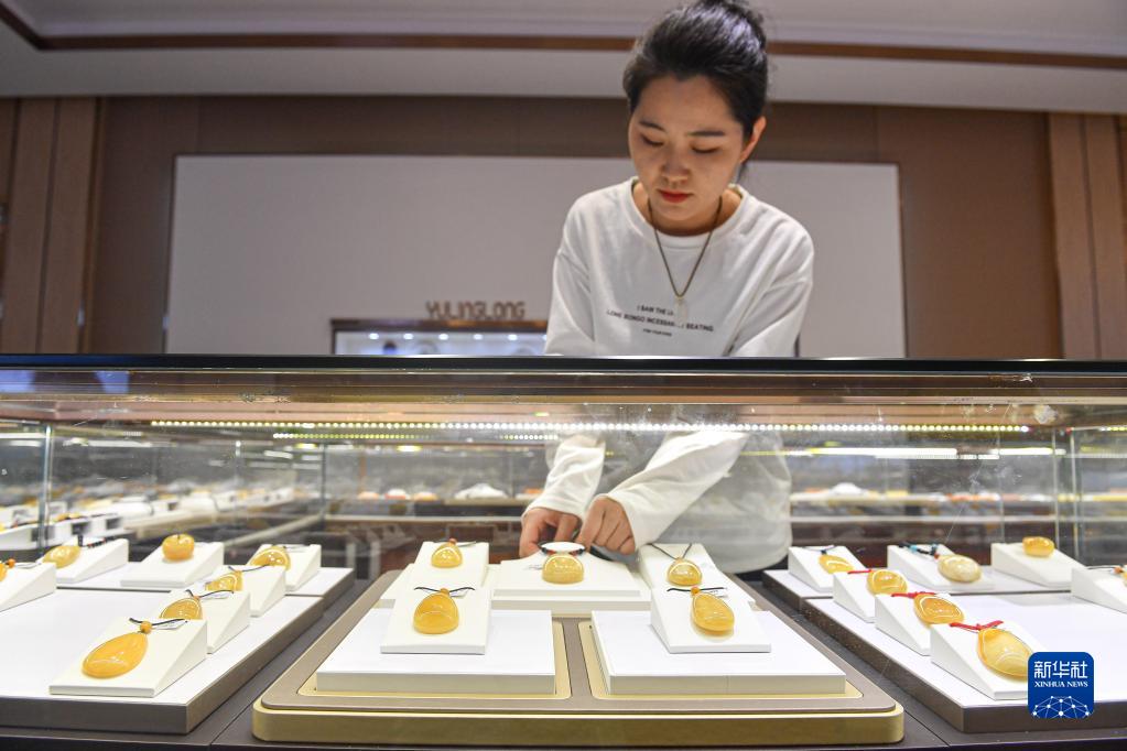 在海南洋浦保稅港區拍攝的海南玉玲瓏珠寶科技有限公司展廳(2021年12月3日攝)。