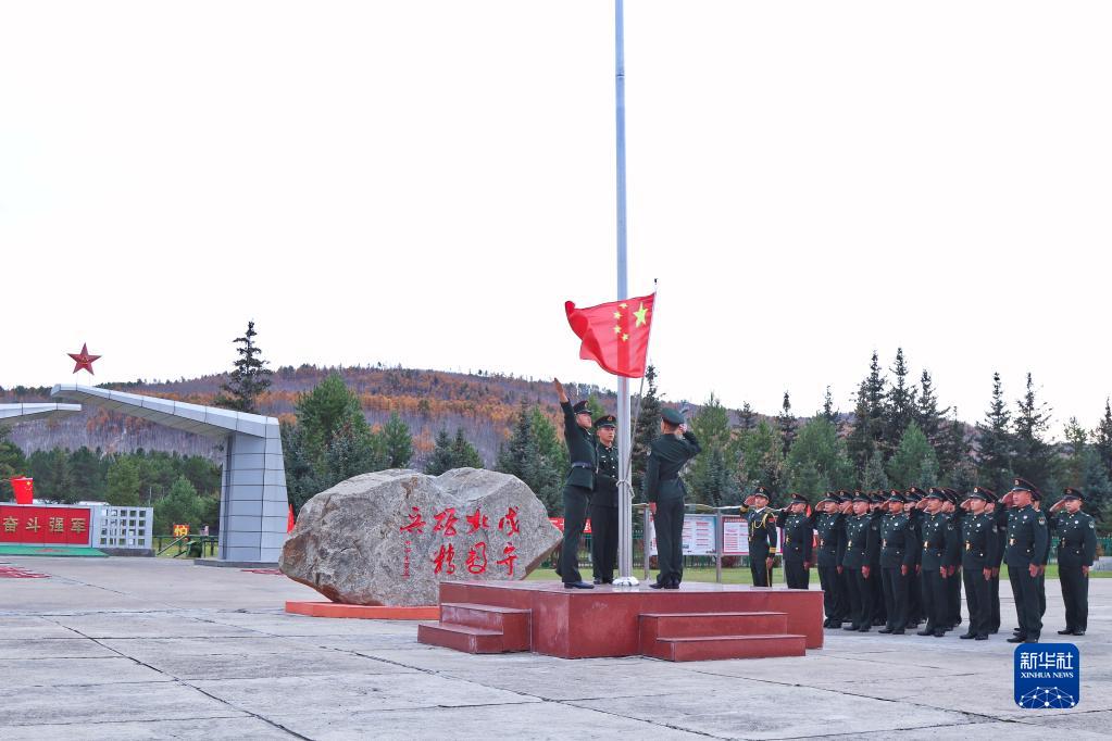 10月1日,在祖國最北端的漠河市北極村,駐守在這里的北部戰區陸軍某邊防旅北極哨所官兵舉行升國旗儀式。