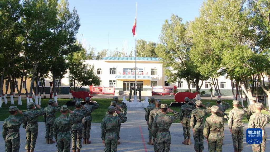 10月1日,在祖國的西北邊陲,駐守在這里的新疆軍區烏拉斯臺邊防連官兵舉行升旗儀式。
