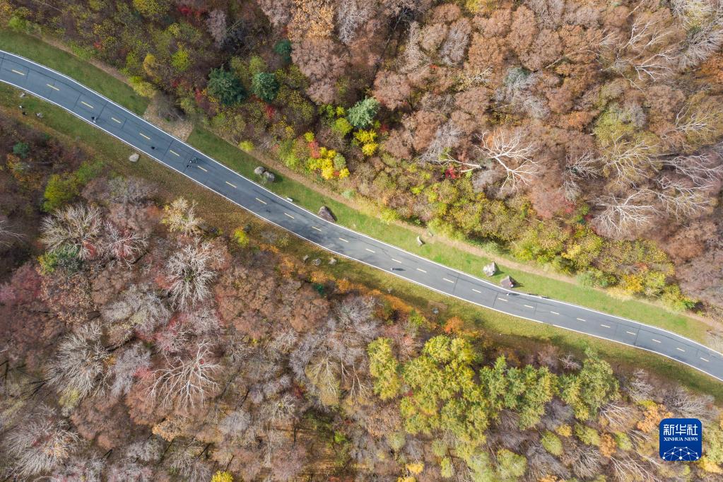 10月1日,游客在位于黑龍江省哈爾濱市阿城區的金龍山國家森林公園內觀(guān)賞游玩(無(wú)人機照片)。