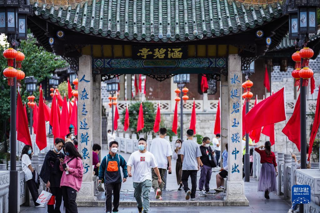 10月1日,市民在貴州省貴陽(yáng)市南明區甲秀樓游玩。